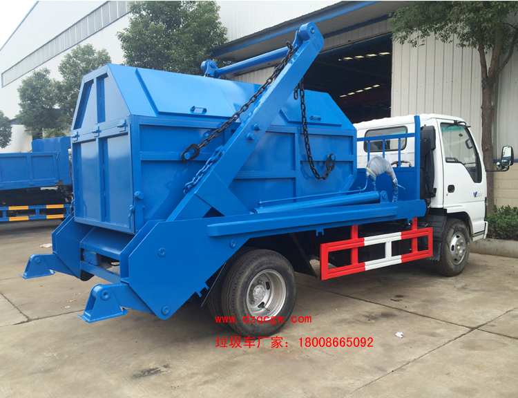 組成部分:國內知名品牌慶鈴五十鈴原裝底盤(全國聯保)、垃圾箱、取力器、多路換向閥、擺臂、液壓系統、操作系統等組成。(舉升油缸及鎖緊油缸系我廠自行研發生產的雙作用油缸。)