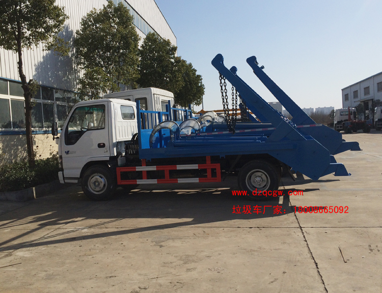上裝說明: 產品介紹:擺臂式垃圾車加裝統一配套液壓舉升總成,通過左右兩臂裝運全國統一擺臂式垃圾斗,可一車配多廂,帶自卸功能,可自行傾倒垃圾。 可加裝密封蓋,防止泄露飛揚污染,在裝卸的運輸過程中可有效地避免二次污染,以適應不同環境使用要求,該車結構簡單,操作穩定方便,裝卸效率高,機械化程度高,節省人力,采用國內領先技術及軍工企業配件,質量可靠,安全穩定,可由生產廠家為用戶提供垃圾廂圖紙,協助用戶設計垃圾廂。
