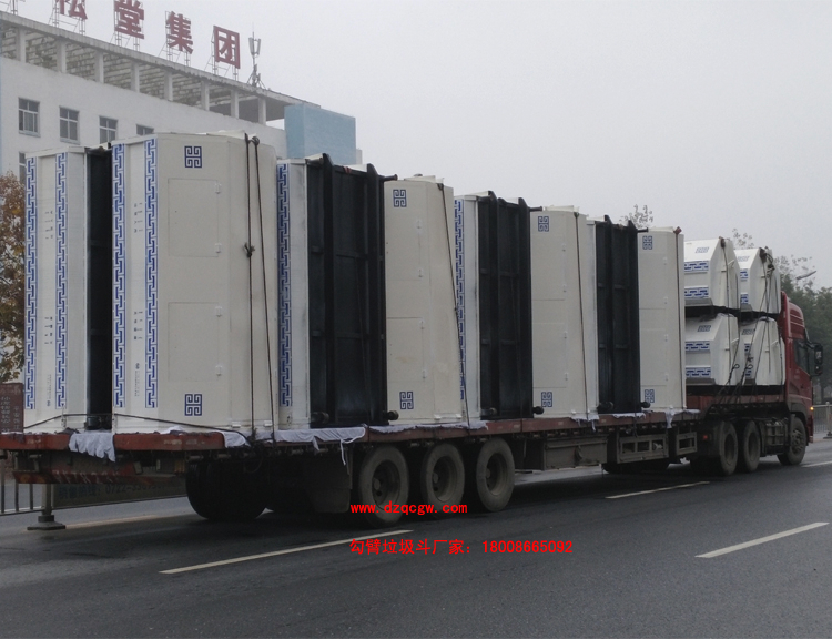 188個8方勾臂垃圾斗已生產(chǎn)完畢并運至鄂爾多斯