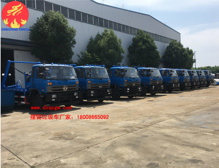 15臺10方東風(fēng)145擺臂垃圾車列隊(duì)出廠
