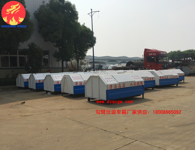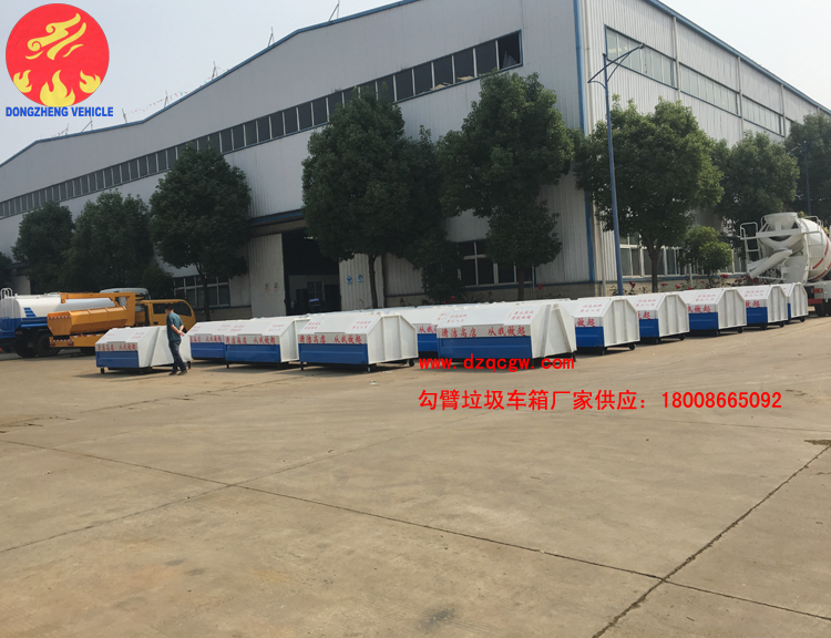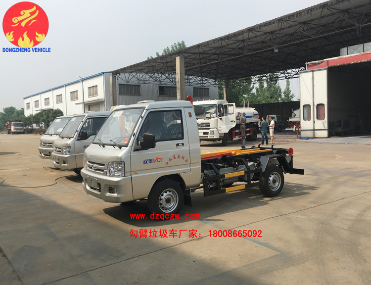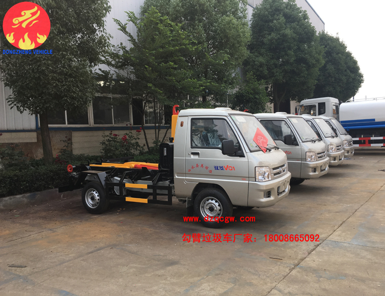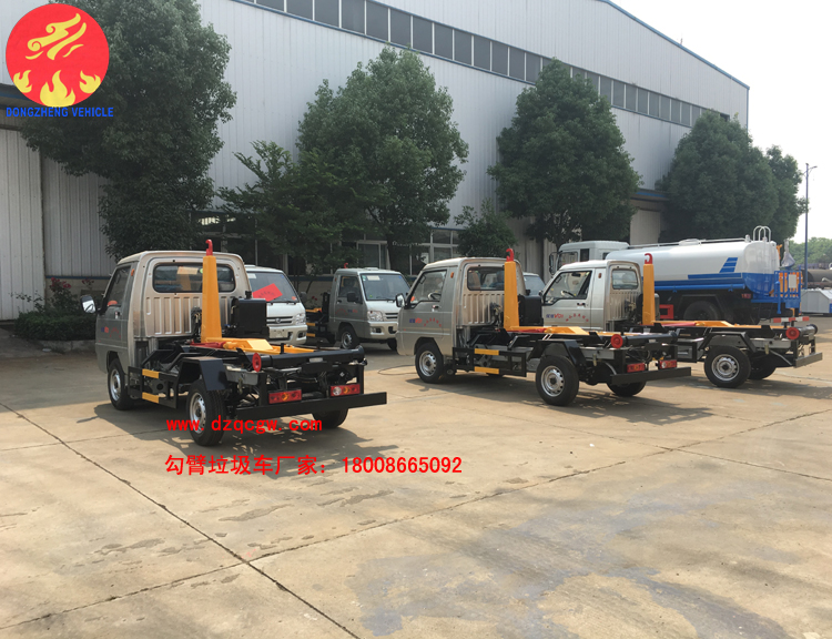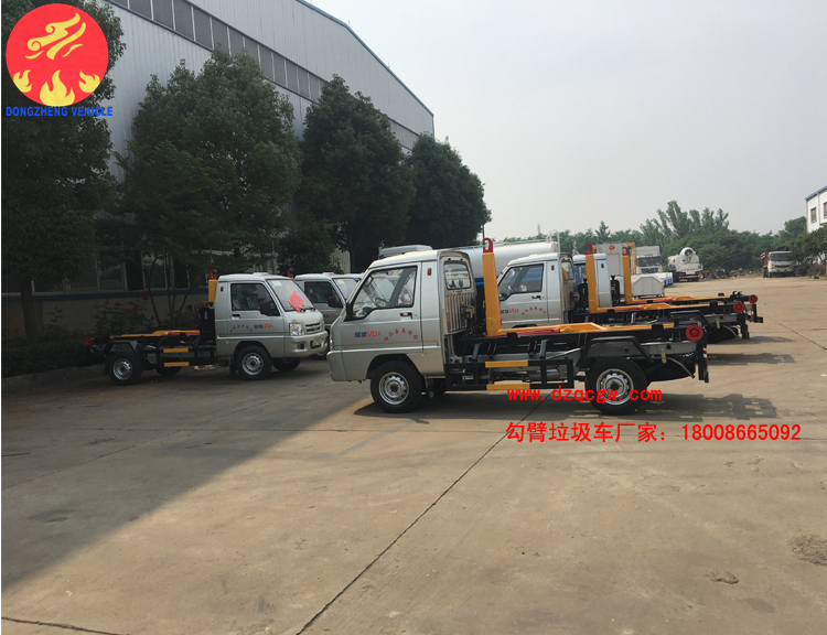 我公司生產的勾臂垃圾車采用高新設計可伸縮的鉤臂,實現垃圾廂的二次吊裝,自吊上放下,可自行傾倒垃圾。該車結構簡單,操作穩定方便,裝卸效率高,機械化程度高,節省人力。一車可帶多個大廂,在裝卸的運輸過程中可有效地避免二次污染。
