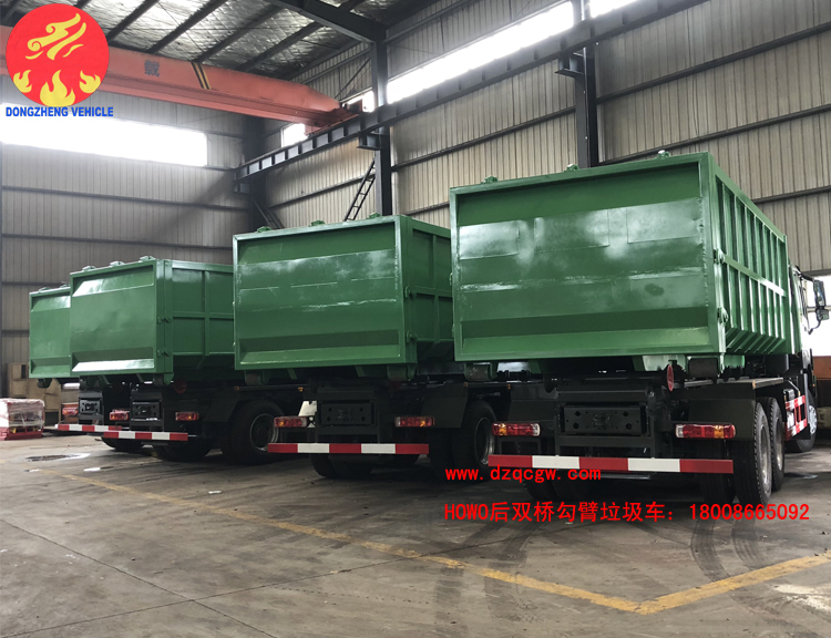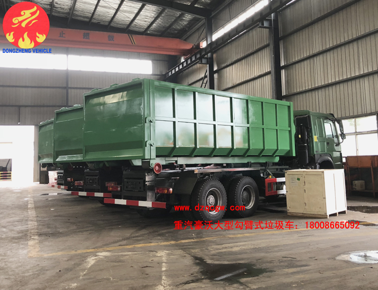 重汽豪沃后雙橋大型勾臂式垃圾車已下線