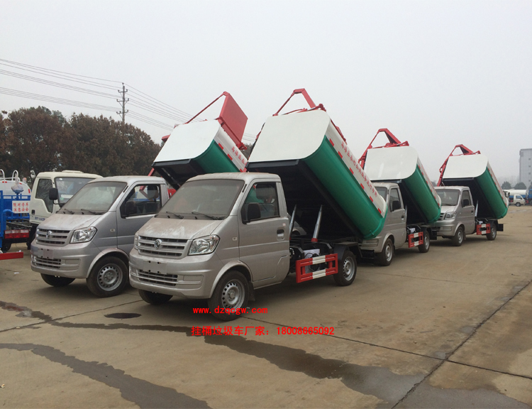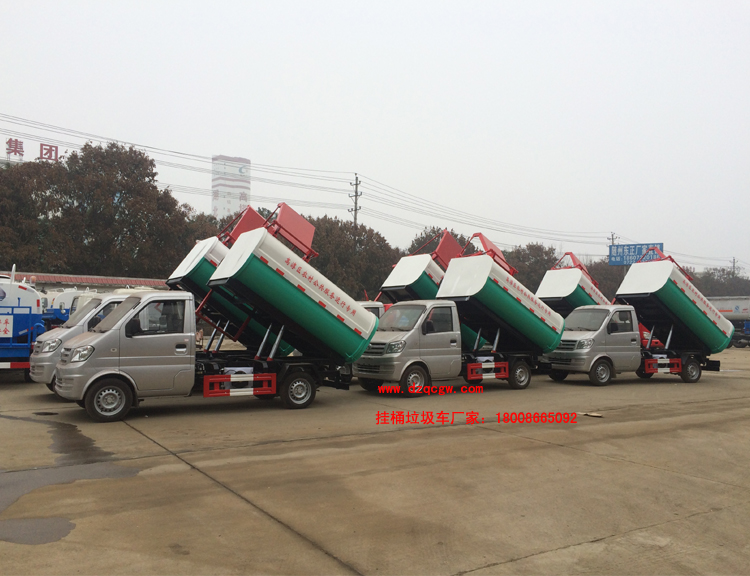 該車型符合國五排放標準,單排駕駛室,2760mm軸距,渝安70馬力汽油發(fā)動機,5檔箱,前盤后鼓式剎車,165/70R14真空胎,上裝容積約3個方。該車型的主要優(yōu)勢在于車型小機動性強,一個車能配幾十個垃圾廂,能實現(xiàn)一臺車與多個垃圾廂聯(lián)合作業(yè),循環(huán)運輸,充分提高了車輛的運輸能力,通常用于街道兩側(cè)的垃圾桶內(nèi)垃圾的收集運用。