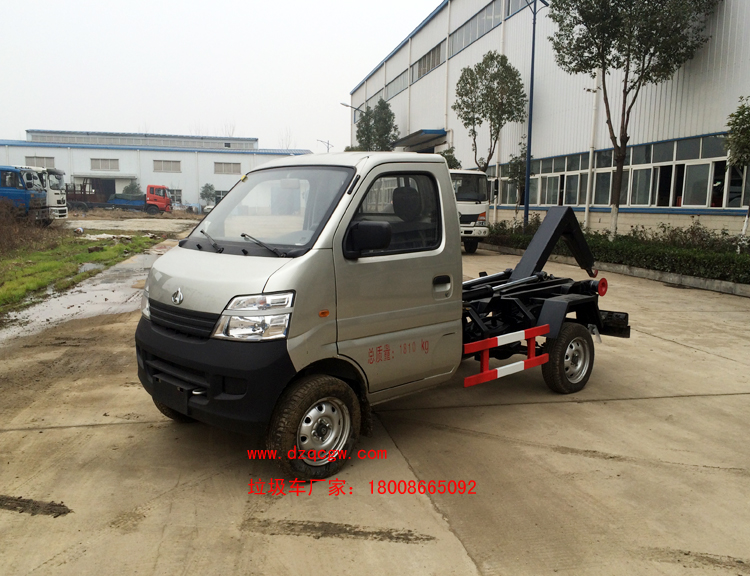 類型二:長安3方勾臂垃圾車(后雙輪),長安國五汽油單排駕駛室,2990mm軸距,重慶小康動力88馬力國五汽油機,5檔變速箱,前盤后鼓剎車,后雙輪,165R14LT真空胎。帶液壓系統,室外操作,可加裝室內操作。