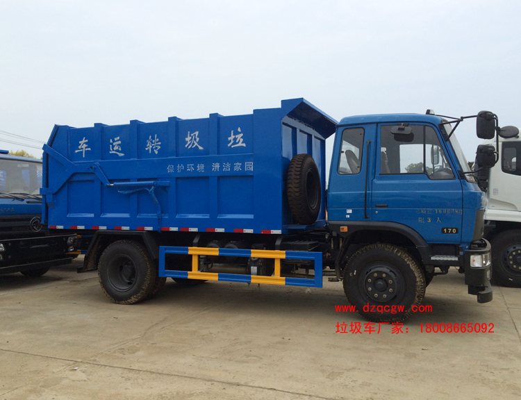 卸料結構:系用箱卸料,由兩只液壓油缸直接舉升車廂進行卸料,箱底與地面夾角不小于45度,以實現垃圾依靠自重能自行卸下的專用自卸運輸車。