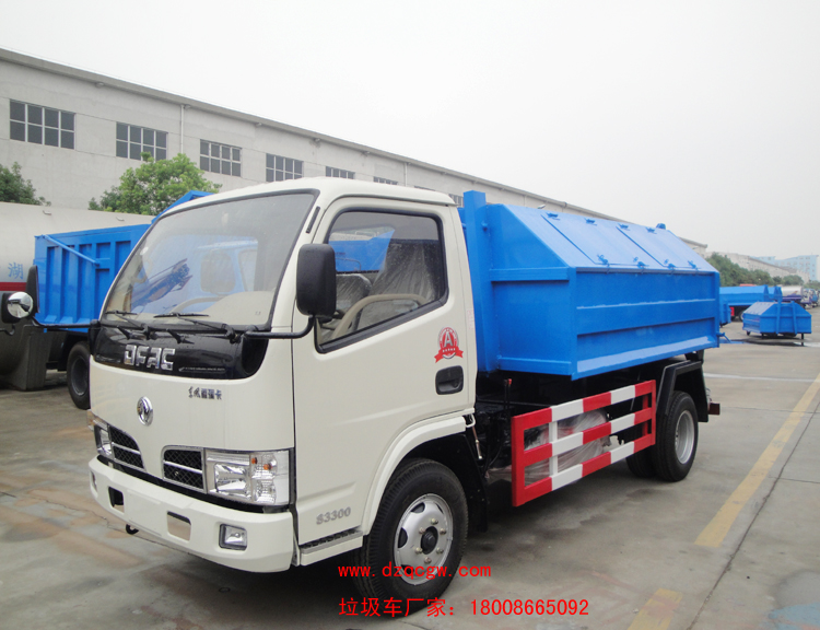 車輛名稱: 東風福瑞卡勾臂垃圾車 整車型號: SZD5070ZXX5(炎帝牌)