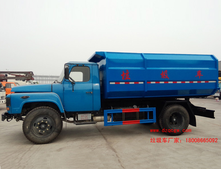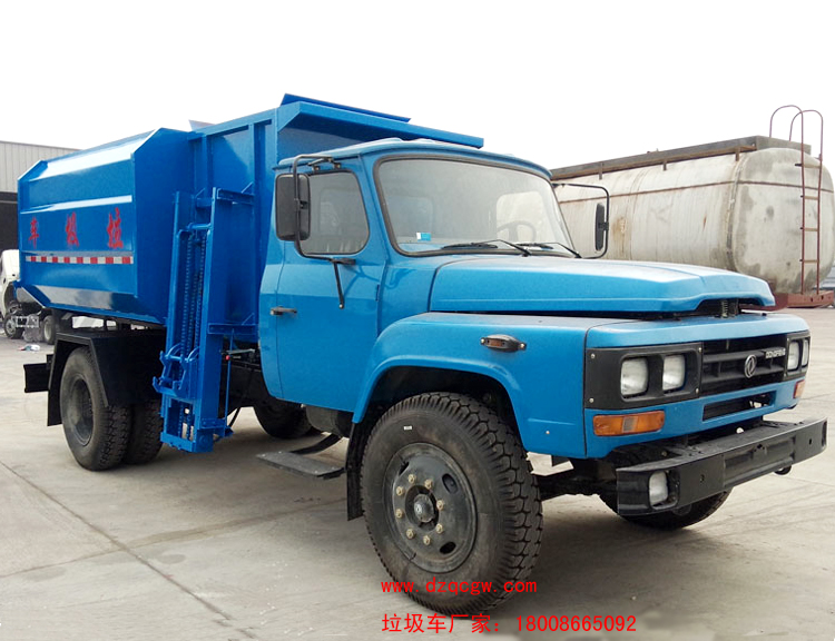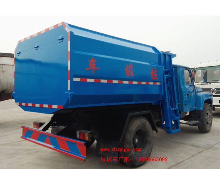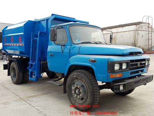 車輛名稱: 東風尖頭140自裝卸式垃圾車 整車型號: SZD5100ZZZE4(炎帝牌)