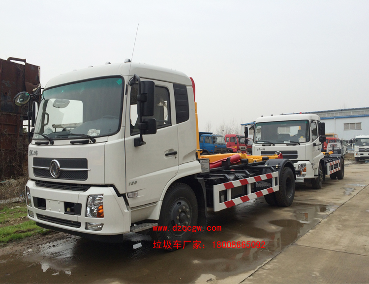 車輛名稱: 東風天錦勾臂垃圾車(8方) 整車型號: SZD5160ZXXD5(炎帝牌)