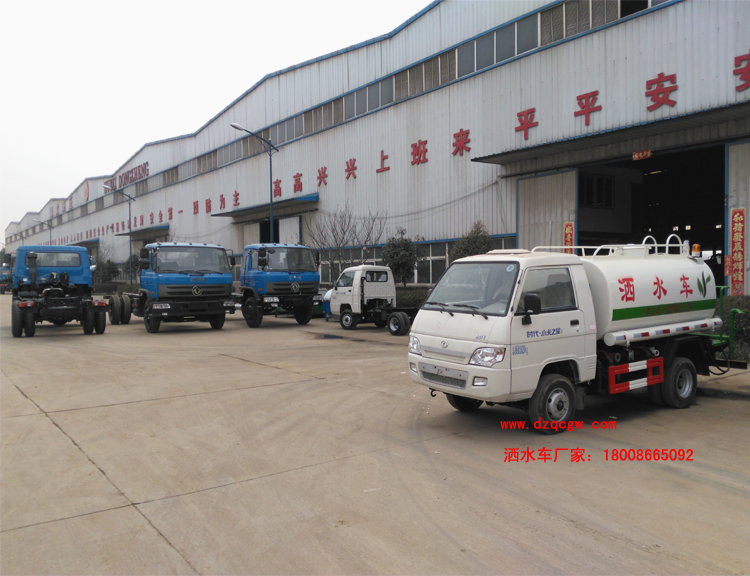 改裝部分:標配前沖、后灑、側噴、工作平臺、綠化高炮、自流閥、消防接口,輸水管3米2根,8噸以上罐體帶高位花灑2個,億豐泵或金龍泵,控制方式為手動。選裝氣動閥門控制;高位花灑,大鴨嘴,藥盤,罐體側面加裝萬向可調節噴頭,罐體后部壓塵噴灑裝置,兩個圓警燈或長警燈,LED箭頭燈,泵可選裝威龍泵或農藥噴霧裝置。