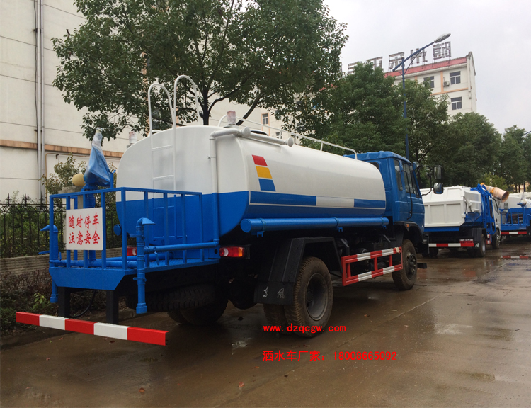 改裝部分:標(biāo)配前沖、后灑、側(cè)噴、工作平臺、綠化高炮、自流閥、消防接口,輸水管3米2根,8噸以上罐體帶高位花灑2個(gè),億豐泵或金龍泵,控制方式為手動。選裝氣動閥門控制;高位花灑,大鴨嘴,藥盤,罐體側(cè)面加裝萬向可調(diào)節(jié)噴頭,罐體后部壓塵噴灑裝置,兩個(gè)圓警燈或長警燈,LED箭頭燈,泵可選裝威龍泵或農(nóng)藥噴霧裝置。