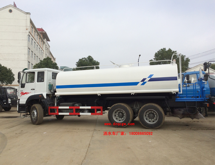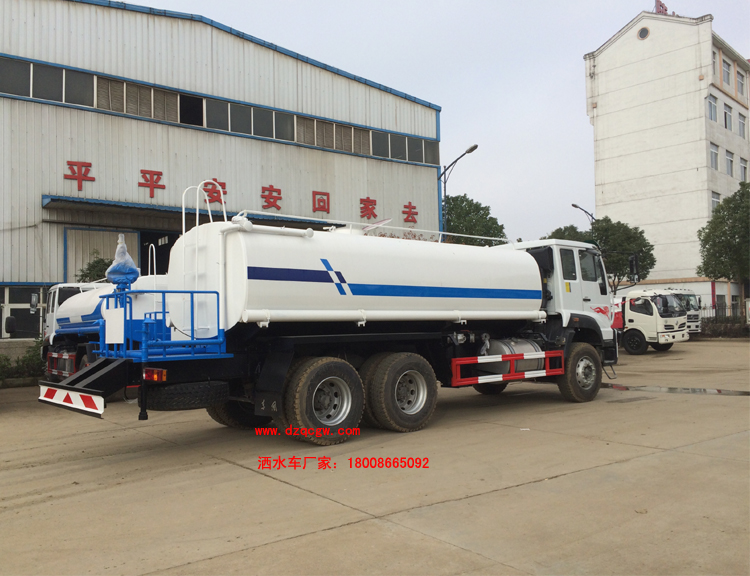 改裝部分:標配前沖、后灑、側噴、工作平臺、綠化高炮、自流閥、消防接口,輸水管3米2根,8噸以上罐體帶高位花灑2個,億豐泵或金龍泵,控制方式為手動。選裝氣動閥門控制;高位花灑,大鴨嘴,藥盤,罐體側面加裝萬向可調節噴頭,罐體后部壓塵噴灑裝置,兩個圓警燈或長警燈,LED箭頭燈,泵可選裝威龍泵或農藥噴霧裝置。