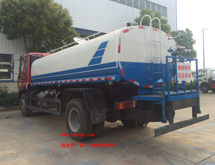 改裝部分:標配前沖、后灑、側噴、工作平臺、綠化高炮、自流閥、消防接口,輸水管3米2根,8噸以上罐體帶高位花灑2個,億豐泵或金龍泵,控制方式為手動。選裝氣動閥門控制;高位花灑,大鴨嘴,藥盤,罐體側面加裝萬向可調節噴頭,罐體后部壓塵噴灑裝置,兩個圓警燈或長警燈,LED箭頭燈,泵可選裝威龍泵或農藥噴霧裝置。