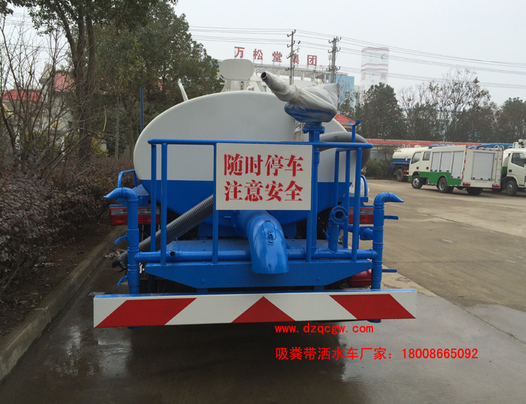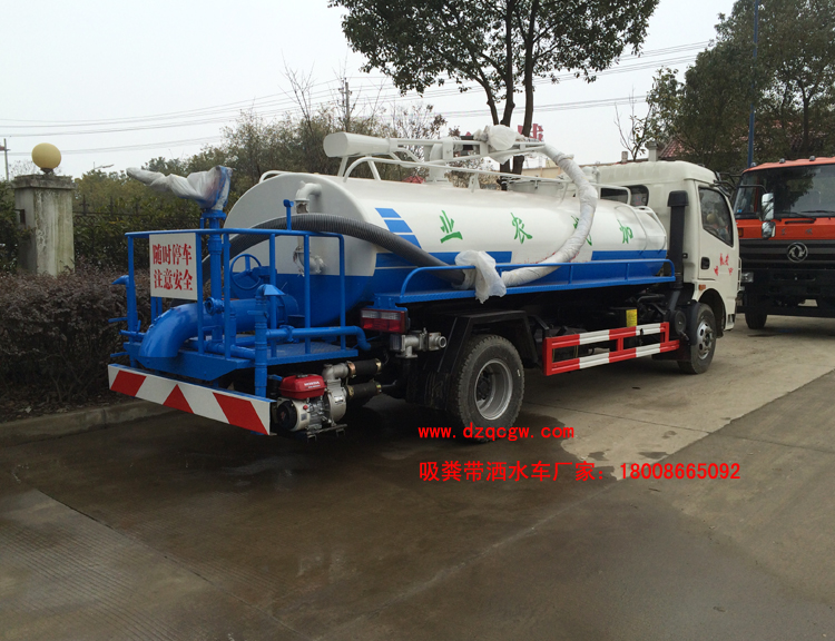 吸糞管:可360度旋轉,抽滿糞罐時間:≤5min,吸程:≥6m。自吸自排,壽命長,工作速度快,容量大,運輸方便,適用于收集運輸糞便、泥漿、原油等液體物質。P.S.可根據客戶要求加裝灑水功能,水罐糞罐獨立分倉,即可吸糞又可灑水,一車兩用。加裝水箱或工具箱,加裝液位報警裝置。